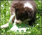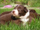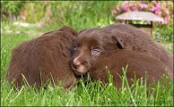No tak pryč jsou časy hodných, klidných, spících štěňátek!! Děcka řádí jak černá ruka, už se domáhají volnosti na zahradě, naštěstí únava se vždy brzy dostaví... vedra a sluníčko je zažene do stínu, kde si můžou spokojeně schrupnout. Udělat pár fotek je téměř nemožné, protože většina z nich dopadne takto: