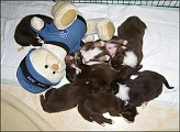 13,35 hod - no a zase holka - čokoládka po mámě, skoro bez bílé barvičky, váha 320 gramů:-)) Vypadá to, že v bříšku je ukryté ještě jedno mrně, uvidíme... 13,23 hod - pěkně na střídačku - opět kluk a opět hnědobílý s pálením - 345 gramů 12,50 hod - opět na svět přišla další slečna - tentokráte hnědobílá s pálením - 330 gramů 12,40 hod - další klučina - hnědobílý s pálením, je ho kus - 420 gramů:-) 11,40 hod - další hnědobílá slečna - 320 gramů:-))